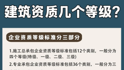 想知道一家建筑工程公司的實力如何,最為直觀的方式就是查看其資質(zhì)證書等級,建筑工程資質(zhì)可以劃分為特級、一級、二級和三級......