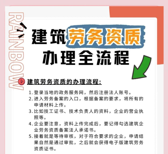 隨著建筑施工勞務(wù)資質(zhì)正式由審批制改為備案制,大大縮短業(yè)務(wù)流程,企業(yè)申請施工勞務(wù)資質(zhì)可以做到當(dāng)天就能拿到資質(zhì)證書......